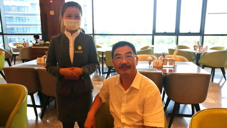 剛進(jìn)假日酒店,在前廳實(shí)習(xí)的范迎春同學(xué)就熱情迎接我們,幫我們掃碼,拿行李,登記入住。沈校長和學(xué)生熱情握手,并不時(shí)稱贊他的專業(yè)和細(xì)心周到?!澳愕臏嘏岊櫩唾e至如歸”,這是沈校長對(duì)實(shí)習(xí)學(xué)生的高度評(píng)價(jià)。 由于酒店客滿,學(xué)生實(shí)習(xí)部門不同,工作時(shí)間也不一樣,為了不影響學(xué)生正常工作,第二天早餐的時(shí)候,沈校長看望了正在西餐廳實(shí)習(xí)的朱悅、王燕,阮芳同學(xué)。盡管西餐廳顧客多,工作累,時(shí)間長,但我們的同學(xué)都能堅(jiān)持,而且服務(wù)熱情主動(dòng)?!敖裉斐渣c(diǎn)苦,明天才能做成大事,成就偉業(yè)?!鄙蛐iL這樣諄諄告誡我們的實(shí)習(xí)生。在行政部上班的朱悅早上也趕到西餐廳幫忙,她的微笑,她的言行舉止,展現(xiàn)了桐城師專學(xué)子青春靚麗,朝氣蓬勃的精神風(fēng)貌?!芭_(tái)上一分鐘,臺(tái)下十年功”。沈波校長對(duì)朱悅的待人接物非常滿意,要求旅游與公共管理系今后要加強(qiáng)旅游酒店專業(yè)學(xué)生綜合素質(zhì)培養(yǎng),特別是禮儀訓(xùn)練,多培養(yǎng)出向朱悅一樣的好孩子,為安徽及長三角輸送更多更優(yōu)秀的旅游服務(wù)管理人才。