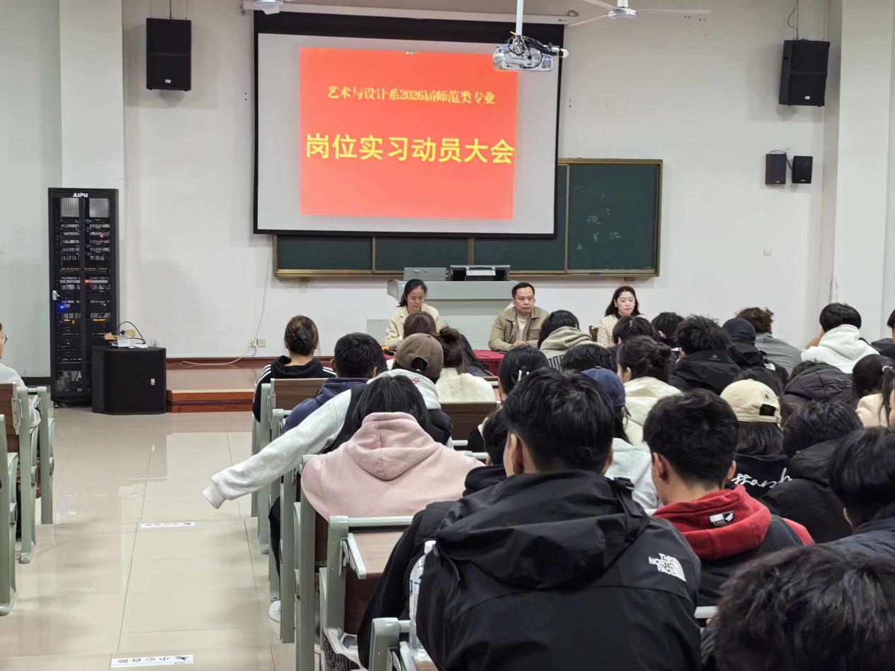為明確實(shí)習(xí)任務(wù)、凝聚實(shí)習(xí)共識(shí),確保師范生崗位實(shí)習(xí)工作順利推進(jìn),藝術(shù)與設(shè)計(jì)系于11月10日在以智樓報(bào)告廳隆重召開2026屆師范類專業(yè)崗位實(shí)習(xí)動(dòng)員大會(huì)。系部領(lǐng)導(dǎo)周琳、孫禺慧及全體實(shí)習(xí)指導(dǎo)老師出席會(huì)議,2026屆全體師范生參會(huì),會(huì)議由張倩主持。