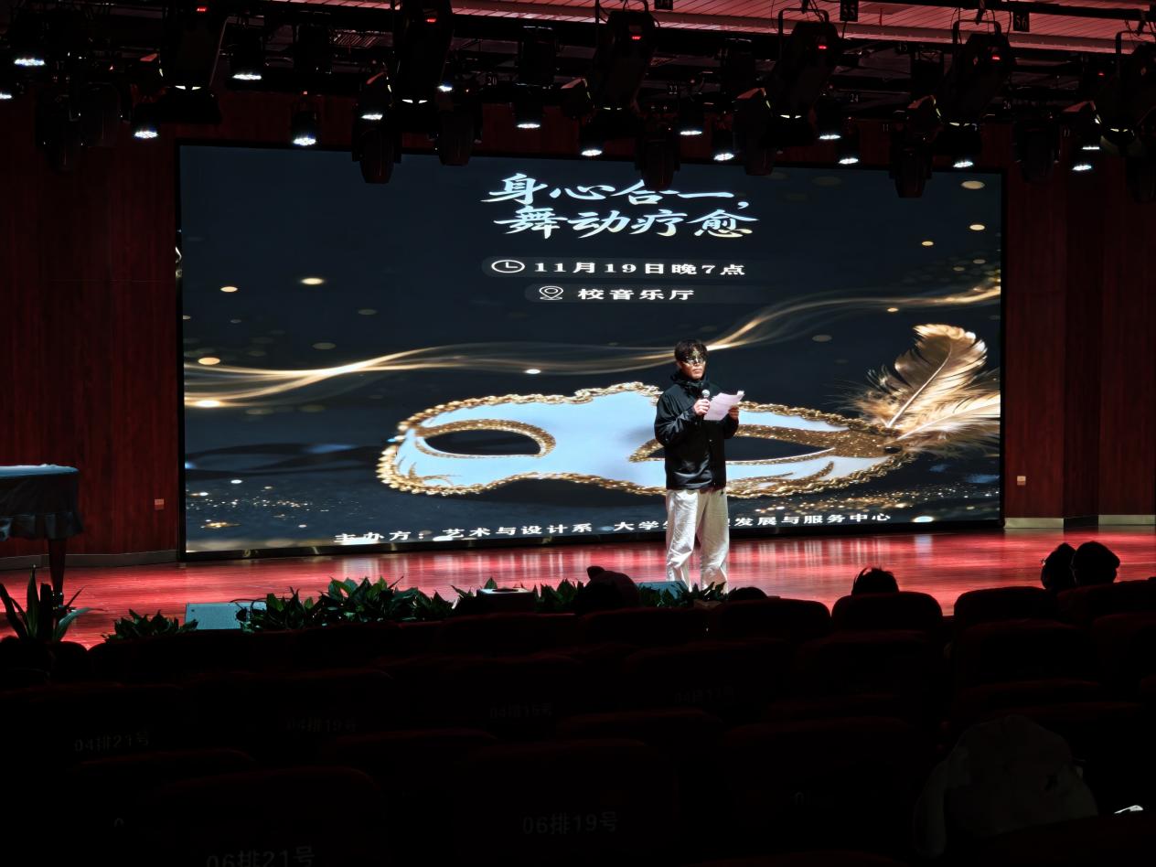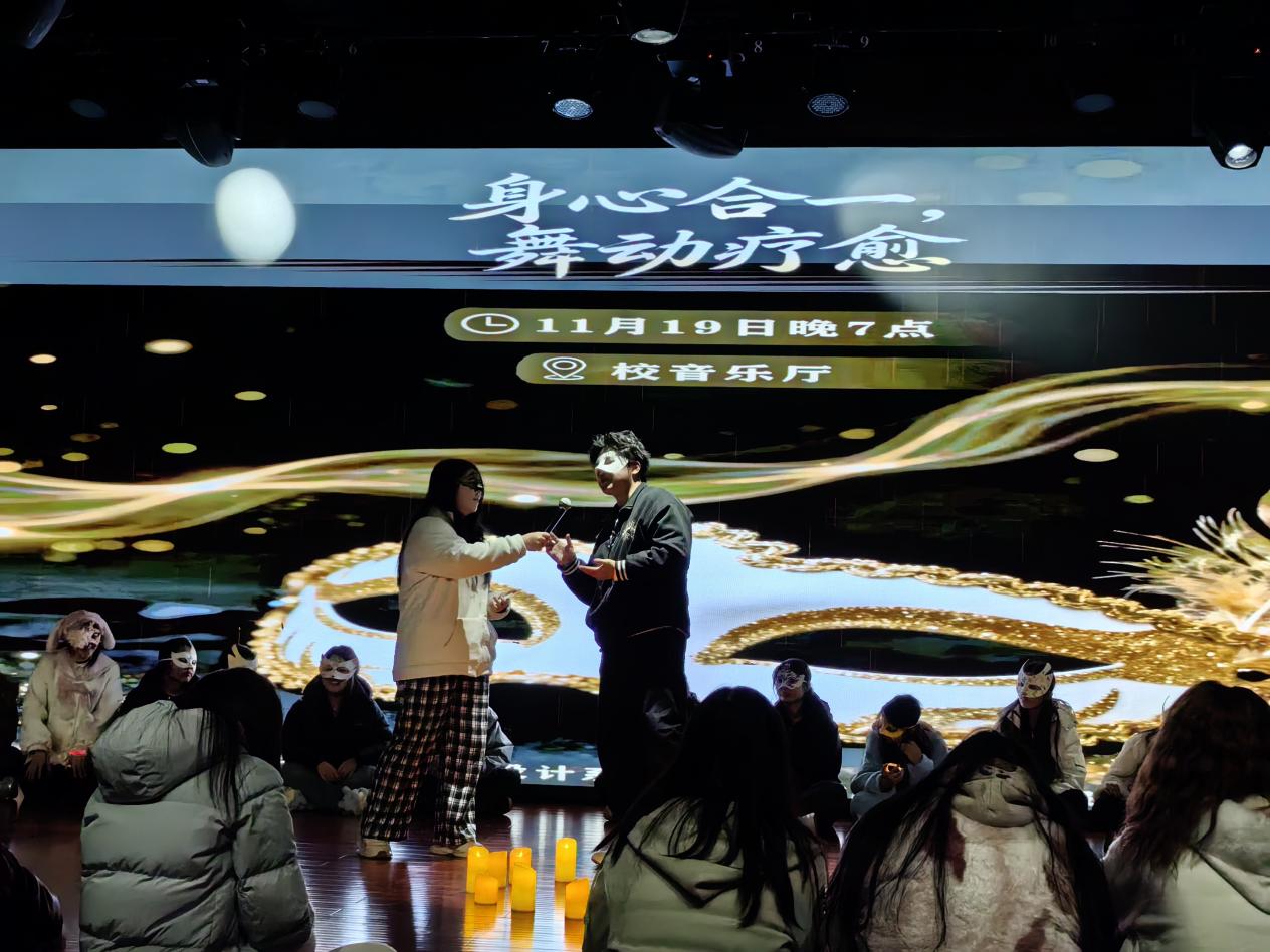 為深化心理育人理念,豐富學(xué)生校園生活,全方位提升學(xué)生身心素養(yǎng)為幫助學(xué)生緩解社交壓力、實(shí)現(xiàn)身心放松,藝術(shù)與設(shè)計(jì)系于2025年11月19日晚在音樂(lè)廳舉辦“身心合一·舞動(dòng)療愈”假面舞會(huì)活動(dòng),來(lái)自藝設(shè)系各年級(jí)各專業(yè)的46同學(xué)參與其中。