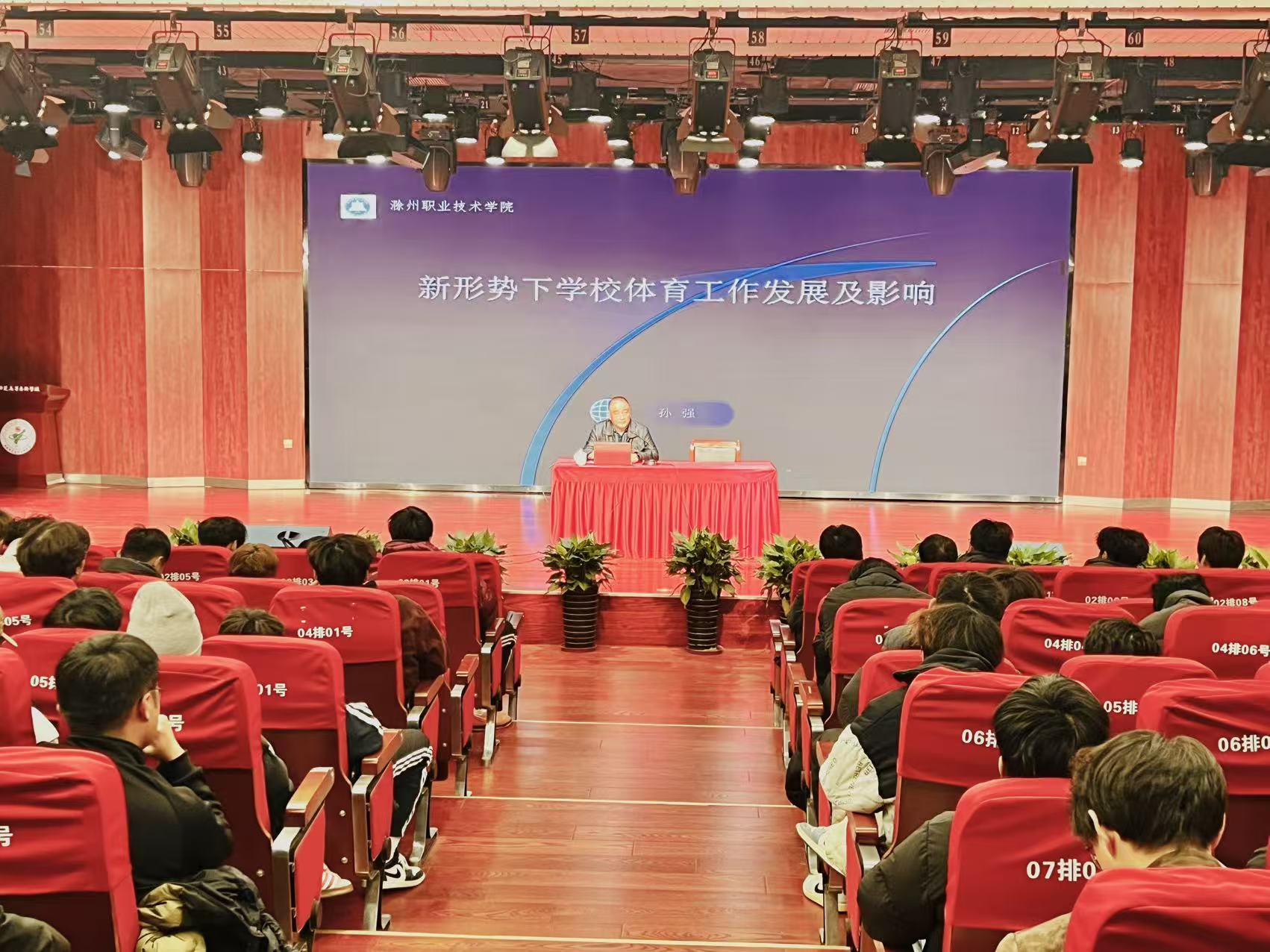 為深入貫徹落實(shí)黨的二十大關(guān)于“加快建設(shè)教育強(qiáng)國、體育強(qiáng)國”的戰(zhàn)略部署,積極響應(yīng)《關(guān)于實(shí)施學(xué)生體質(zhì)強(qiáng)健計(jì)劃的意見》及《深化新時(shí)代中小學(xué)體育工作高質(zhì)量發(fā)展的若干措施》等政策要求,我校特邀滁州職業(yè)學(xué)院體育部主任、安徽省學(xué)校體育協(xié)會(huì)專家孫強(qiáng)教授,于12月9日下午在校音樂廳舉辦《新形勢下學(xué)校體育工作發(fā)展及影響》專題講座。體育教育專業(yè)師生、系負(fù)責(zé)人200余人參會(huì),現(xiàn)場座無虛席,交流氛圍熱烈。