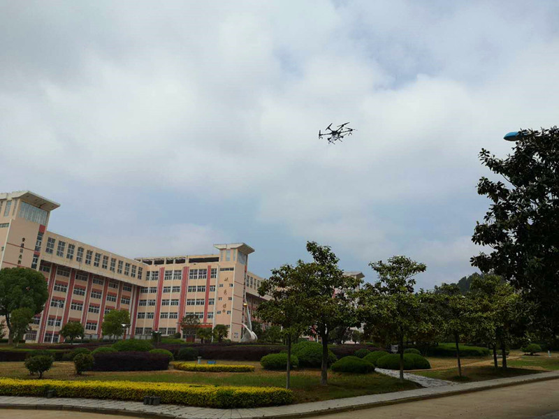 利用無(wú)人機(jī),對(duì)校園的道路、操場(chǎng)、苗木花卉等所有露天場(chǎng)所,進(jìn)行全面消殺。