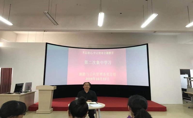 2019年10月22日下午4點,旅管系黨支部“不忘初心、牢記使命”主題教育第二次集中學(xué)習(xí)研討會議召開,旅管系黨支部書記汪庭才同志主持會議,黨支部全體黨員教師和入黨積極分子參加會議。