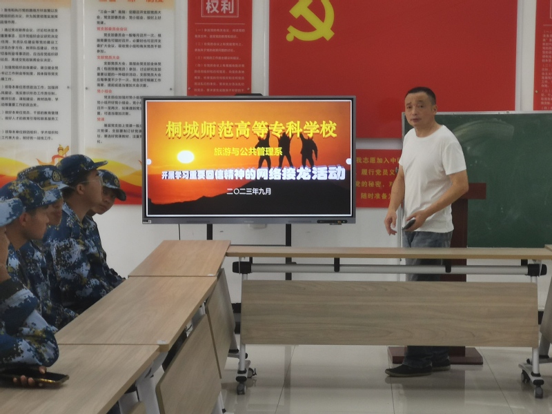 為了深入學(xué)習(xí)貫徹黨的二十大精神,認(rèn)真學(xué)習(xí)貫徹習(xí)近平總書記給潛山野寨中學(xué)新考取軍校同學(xué)們的重要回信精神,9月15日,旅管系在一站式社區(qū)開展學(xué)習(xí)重要回信精神的網(wǎng)絡(luò)接龍活動和國防知識線上答題活動。