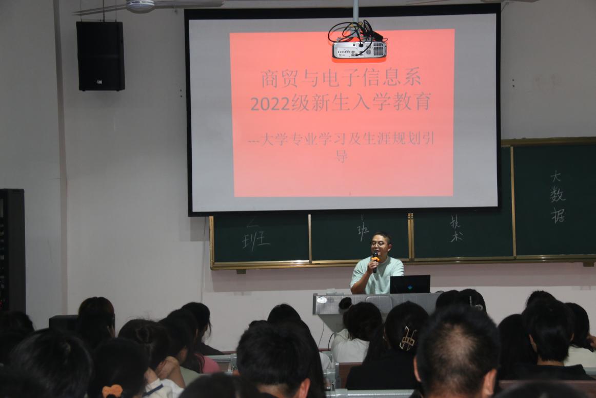 金秋來臨之際,豐收滿滿之時,2022年9月29日,商貿(mào)與電子信息系在以智樓一樓大廳舉行了以“大學生專業(yè)學習及生涯規(guī)劃引導”為主題的新生入學教育講座,系負責人徐偉主講,全體22級新生及輔導員參加。