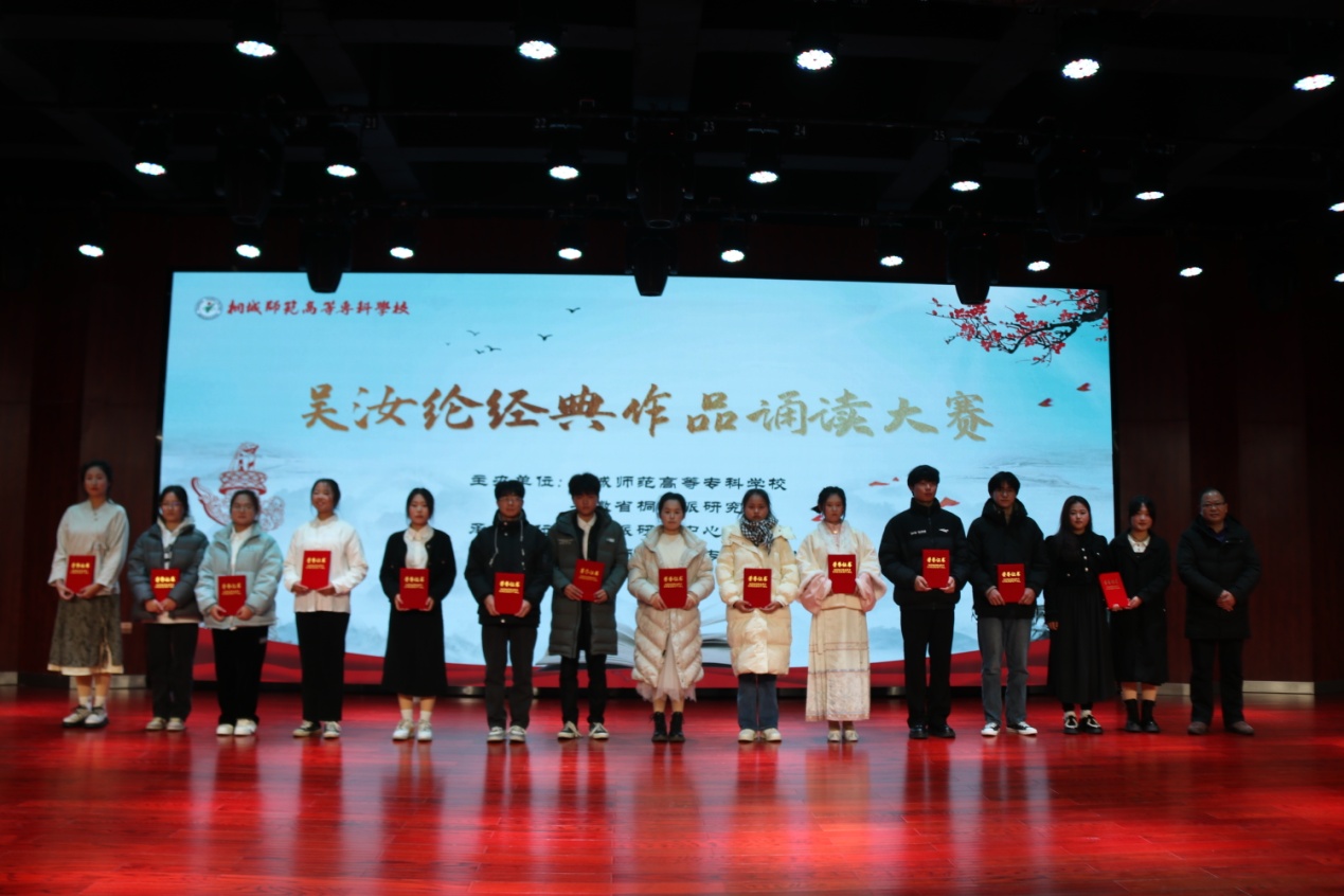 為深入學(xué)習(xí)貫徹習(xí)近平文化思想和習(xí)近平總書記在文化傳承發(fā)展座談會(huì)上的重要講話精神,弘揚(yáng)中華優(yōu)秀傳統(tǒng)文化,傳承發(fā)展桐城派,構(gòu)建特色校園文化,豐富學(xué)生業(yè)余生活,加強(qiáng)校際交流。12月21日,由桐城師范高等??茖W(xué)校和安徽省桐城派研究會(huì)聯(lián)合主辦,安徽省桐城中學(xué),桐城派研究中心,校學(xué)生處和校團(tuán)委共同承辦的“吳汝綸經(jīng)典作品誦讀”大賽暨“我心中的吳汝綸”征文比賽頒獎(jiǎng)儀式在音樂廳舉行。校黨委書記王子龍,桐城市人大常委會(huì)主任江學(xué)潮,安徽省桐城中學(xué)黨委書記、校長曹向東,校黨委委員、宣傳部長伍建強(qiáng)出席儀式并為獲獎(jiǎng)選手頒獎(jiǎng)。桐城派研究中心、校學(xué)生處、校團(tuán)委和藝術(shù)與設(shè)計(jì)系相關(guān)負(fù)責(zé)人參加活動(dòng)。