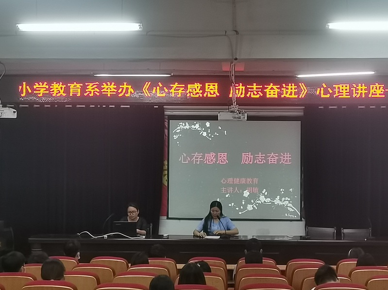 2021年6月7日下午,小學(xué)教育系“心存感恩,勵志奮進”心理講座在以智樓一樓報告廳舉行,我校胡敏老師擔任主講,各班級心理健康委員參會。